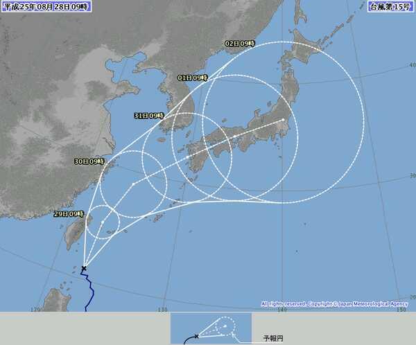 【悲報】 台風15号の最新の進路予測が日本列島横断コース。